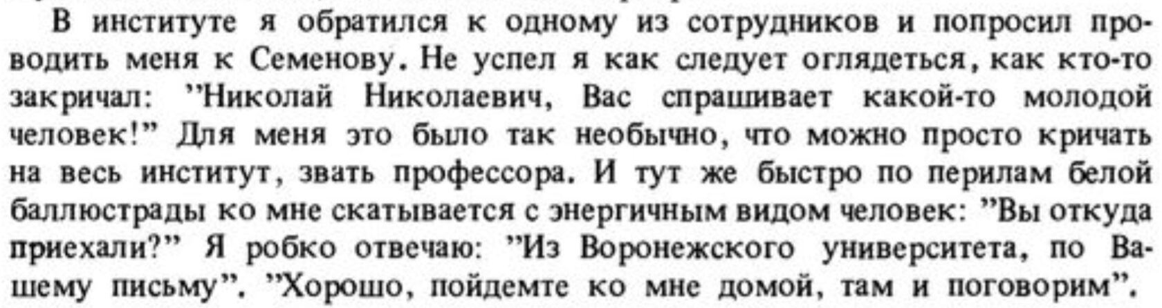 «В 1913 я окончил училище и, проявляя еще реалистом большую склонность к научным занятиям в области физики и химии, поступил на физико-математический факультет Петербургского Университета» — Н.Н. Семенов